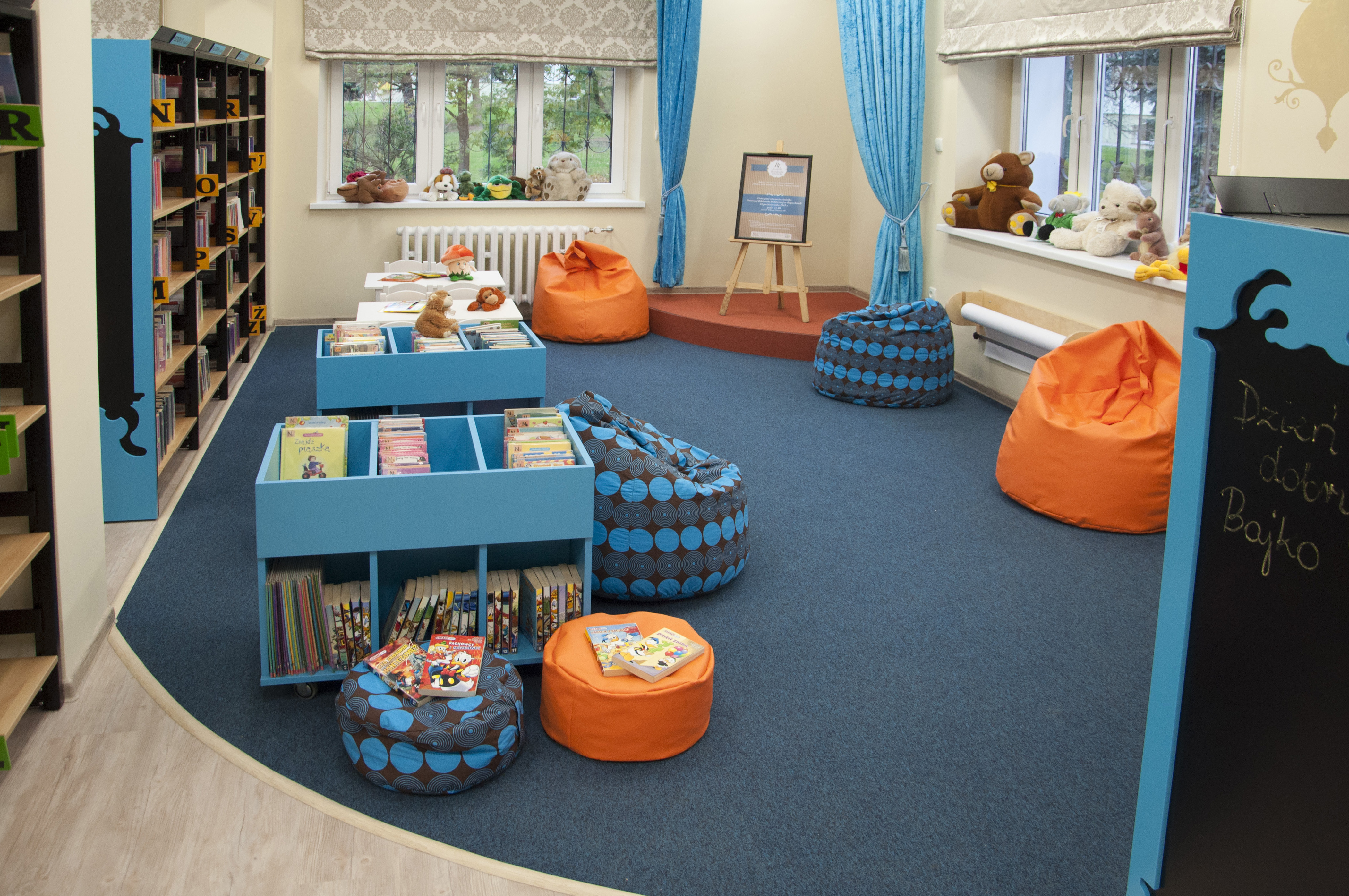 Podmiotem zamawiającym naszą usługę była miejska biblioteka publiczna w Jarosławiu. Realizacja inwestycji odbywała się przy wsparciu środków finansowych z Unii Europejskiej. Wnętrze biblioteki wymagało remontu i przystosowania do najnowszych standardów dla tego typu obiektów. W tym przypadku chodziło m.in. o wykonanie przestrzeni bibliotecznej w sposób bardziej ergonomiczny i poprawiający komfort korzystania z jej zasobów, podzielonych na trzy strefy, tj.: wypożyczalnię dla dorosłych, wypożyczalnię dla dzieci, oraz ogólnodostępną czytelnię główną. Projekt aranżacji został wykonany przez zewnętrzne biuro architektoniczne i uwzględniał też rozwiązania na potrzeby prowadzonej przez bibliotekę działalności kulturalno-oświatowej dla dzieci i młodzieży.
