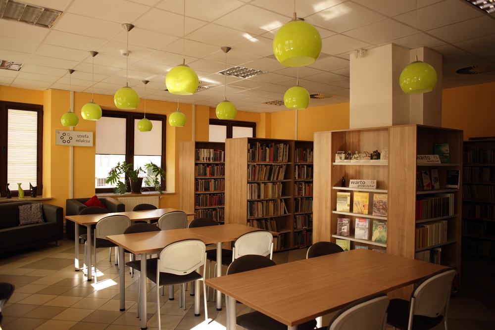 Aranżacja wnętrz objęła całe wyposażenie niezbędne do tego, by obiekt zapewniał pełną funkcjonalność użytkownikom i pracownikom. W aranżacji należało też wykorzystać część dotychczasowych mebli, czyli stworzyć spójną całość z wykorzystaniem starego i nowego asortymentu, np. dostarczone przez nas regały metalowe na książki musiały być dopasowane do już istniejących.