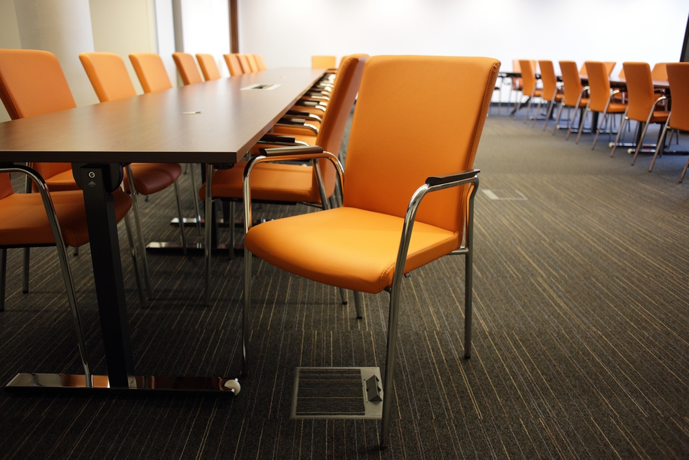 Jeżeli chodzi o cechy techniczne mebli, to Inwestorowi zależało przede wszystkim na tym, żeby dostarczone stoły konferencyjne były wyposażone w tzw. mufy, czyli metalowe gniazda pod blatami, w których mocuje się stelaże w systemie metal w metal. Nasz konkurencja zaprezentowała standardowe i – jak na dzisiejsze czasy – dość przestarzałe połączenie wkręt-płyta, czym obniżyła atrakcyjność swojej oferty. Co do krzeseł – te z kolei miały być sztaplowane, czyli dawać możliwość składania jednych w drugie dla oszczędności miejsca w pomieszczeniu.