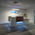 Usiedliśmy więc z klientem i jeszcze raz na spokojnie przeanalizowaliśmy jego potrzeby. Potem jeszcze raz przejrzeliśmy nasze możliwości produkcyjne. Udało się znaleźć recepcję, która łączyła w sobie potrzeby ergonomiczne z dobrym stylem, a dodatkowo idealnie mieściła się w przestrzeni. Klientowi bardzo spodobały się wizualizacje aranżacji i mogliśmy przystąpić do pracy.