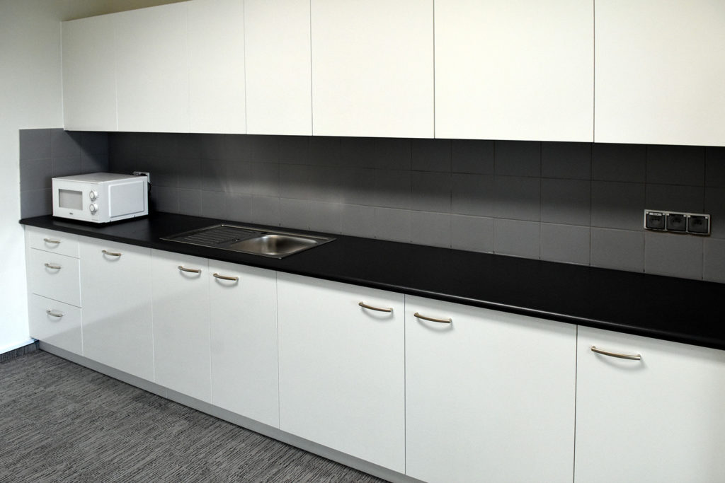 Naszym zadaniem było również wyposażenie sal konferencyjnych i pięciu kuchni. Co ciekawe – we wszystkich pomieszczeniach wspólnych, co do których pracownicy mogli zgłaszać swoje sugestie, zostały ostatecznie zainstalowane krzesła na wysokim stelażu, przypominające nieco wysokością krzesła biurowe. Zarówno w kuchniach pracowniczych, jak i salach konferencyjnych służących do wewnętrznych konsultacji, takie właśnie rozwiązania znalazły swoje zastosowanie.