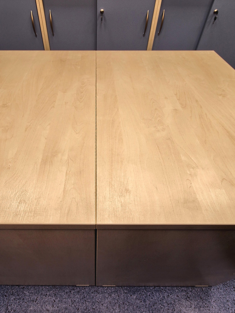 Żaden z dostarczonych przez nas mebli nie był standardowy – przeciwnie – każdy egzemplarz był inny i należało go zaprojektować od początku bazując na wyeksploatowanych w ciągu lat pracy wzorcach znajdujących się w urzędzie. Dotyczyło to wszystkich biurek, kontenerów, szaf i szafek, które musiały mieć indywidualne wymiary, czyli takie jak ich pierwowzory; a także miały powstać z zupełnie nowych materiałów i przy użyciu nowych metod produkcji.