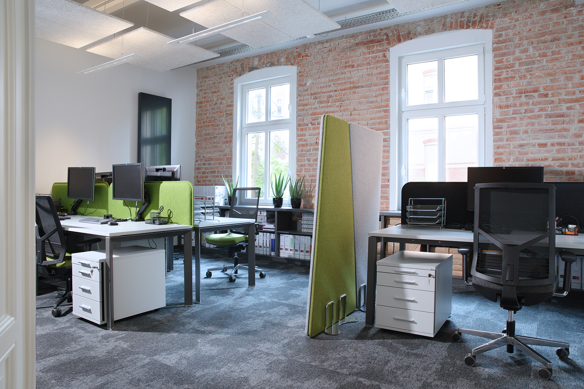 4Audyt to firma audytoryjna. Głównym założeniem projektu było, aby w tej niewielkiej przestrzeni wygospodarować ergonomiczne stanowiska pracy i zapewnić wysoką jakość pracy dla licznego już zespołu. Zlecenie obejmowało kompleksowe wyposażenie wnętrz: biura, sali konferencyjnej, gabinetu, recepcji oraz holu. Zaproponowaliśmy wysokiej jakości meble biurowe oraz ścianki i panele akustyczne, które oprócz podziału przestrzeni, skutecznie redukują hałas. Natomiast oryginalna zaprojektowana pod indywidualne zamówienie klienta lada recepcyjna przykuwa uwagę już od wejścia.