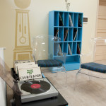 Poza regałami dostarczyliśmy również krzesła. Cześć z nich wykonana została z przezroczystego tworzywa. Należało więc doszyć poduszki na siedziska z materiału tapicerskiego w kolorze zgodnym z projektem przygotowanym przez architekta. Ponadto w specyfikacji znalazły się też stoły składane, lady recepcyjne, zasłony okienne, rolety rzymskie, a nawet stylowy kominek i akcesoria do łazienek oraz pomieszczeń socjalnych. Każdy element dekoracyjny w aranżacji wnętrz wykonaliśmy we własnym zakresie, podobnie jak oznakowanie poszczególnych pomieszczeń, informujące o ich przeznaczeniu.
